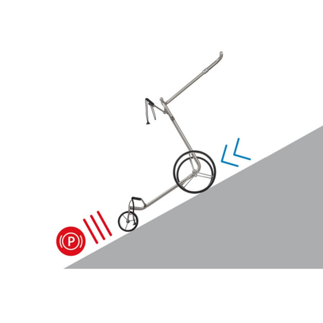 Grâce à sa technique de pliage ingénieuse, ce chariot se plie en une fraction de seconde pour un rangement ultra-compact dans votre voiture ou au caddymaster. Le système d’entraînement 48 V propose les fonctions marche avant, arrière, roue libre, éloignement automatique, ainsi qu’une télécommande incluse pour une conduite encore plus agréable.