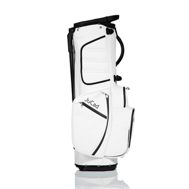 El bolso JuCad First Class combina perfectamente estilo, confort y practicidad, ideal para los aficionados al golf que buscan rendimiento. Su fabricación en material sintético repelente al agua y sus cierres impermeables protegen eficazmente su equipo contra las inclemencias del tiempo. Gracias a su sistema de transporte con correas acolchadas, ofrece un confort excepcional, incluso con una carga máxima. Equipado con un trípode innovador con mecanismo de plegado automático y base dividida en dos partes, puede colocarse fácilmente de pie en un carrito para un manejo sin esfuerzo. Una funda de lluvia integrada proporciona protección adicional para sus palos en caso de mal tiempo, para que pueda jugar con total tranquilidad.