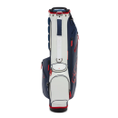 Totalmente impermeable, protege eficazmente tanto el material como los efectos personales en condiciones de humedad. Dispone de 6 bolsillos de almacenamiento, entre ellos un gran bolsillo isotérmico diseñado para transportar bebidas. La distribución de los compartimentos facilita un acceso rápido a los accesorios sin afectar al confort de transporte. Equipamientos prácticos como el portaguantes, el portatoallas y el porta-paraguas completan el conjunto para cubrir las necesidades esenciales del golfista en el campo.