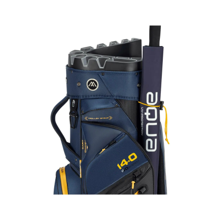 Diseñada para un uso regular sobre carrito, esta bolsa tiene un acabado repelente al agua que protege el equipo de salpicaduras y humedad ligera. Sus 12 bolsillos repartidos alrededor de la bolsa proporcionan un espacio funcional para accesorios, ropa y objetos personales, incluyendo un bolsillo isotérmico especialmente pensado para bebidas. Elementos prácticos como el portaguantes y el portatoallas completan el conjunto, garantizando un uso cómodo durante toda la partida.