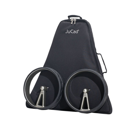 La innovación JuCad Powerlock permite la fijación simultánea del manillar regulable en altura y del soporte superior de la bolsa mediante una práctica manija tipo mariposa, garantizando un uso simple y estable.