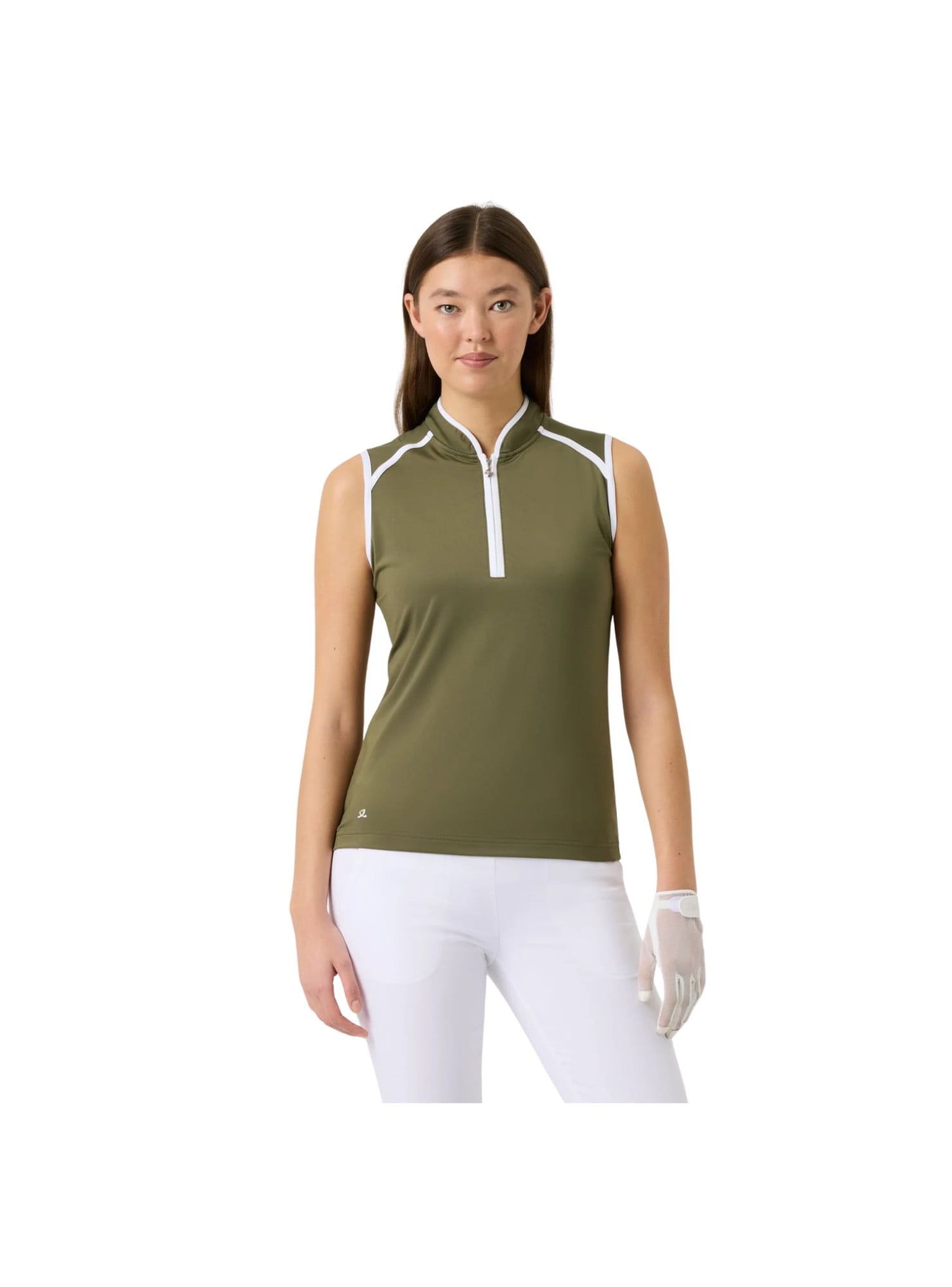 Está diseñado con cuello alto y una cremallera frontal de media longitud, ofreciendo un look deportivo y moderno. Los acabados en jersey contrastante en el cuello y las sisas aportan un toque elegante que realza este modelo versátil.