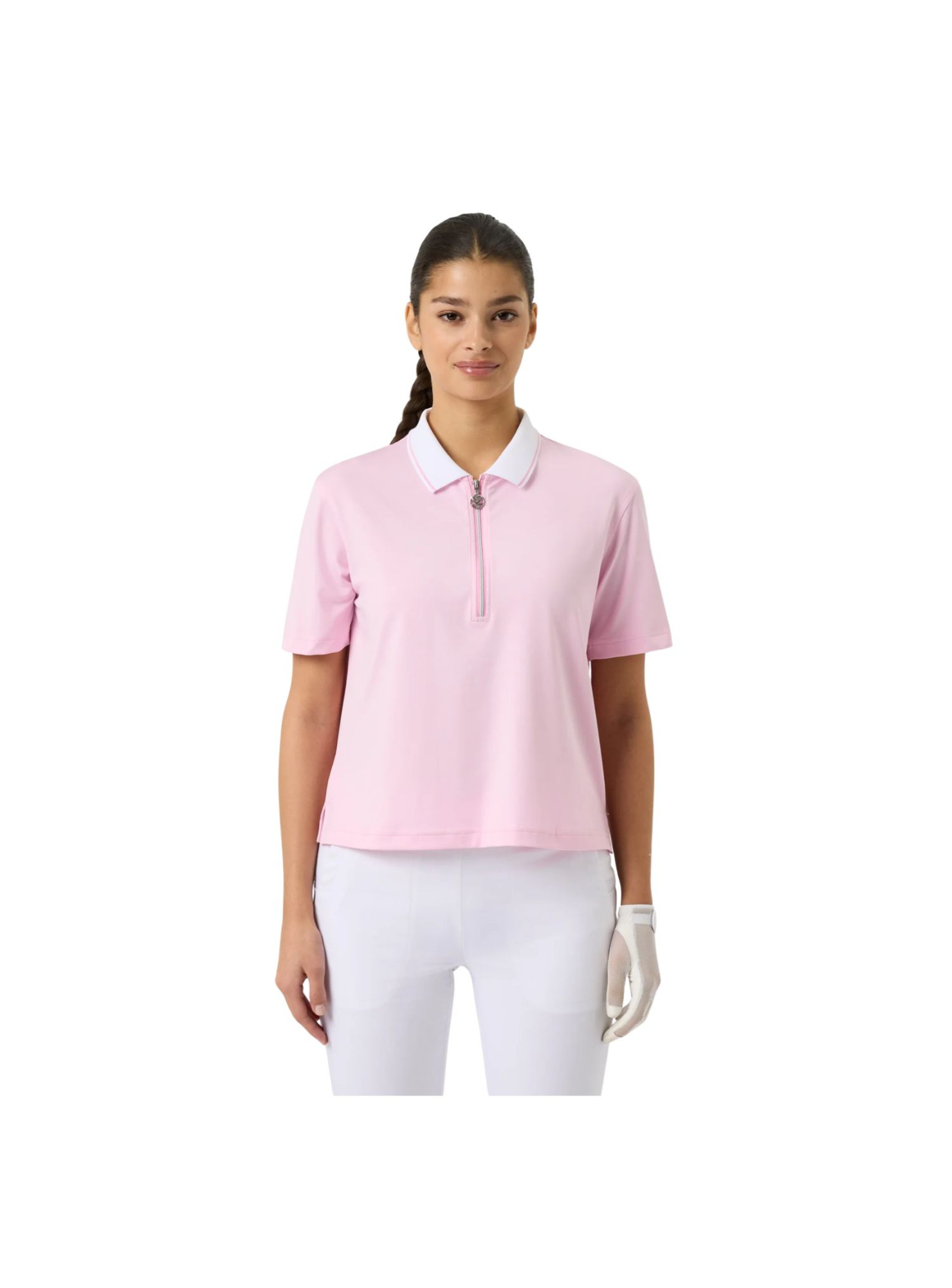 Confeccionado en jersey ligero y liso, es de secado rápido y evacuación de la humedad, garantizando frescura y comodidad durante todo el día. El cuello de punto con rayas y la cremallera frontal plateada aportan un toque elegante y deportivo a este modelo versátil.
