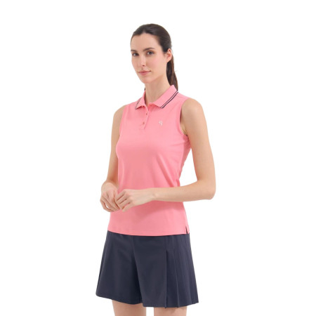 Amaca es un polo sin mangas en piqué suave de estilo deportivo y dinámico, diseñado para ofrecer comodidad y libertad de movimiento durante la actividad. Confeccionado en piqué stretch 100 % poliamida e incorporando las tecnologías Dry-Matic y Sun-Block, garantiza transpirabilidad, secado rápido y protección frente a los rayos UV, proporcionando al mismo tiempo una sensación constante de ligereza. El cuello acanalado con contraste aporta un toque distintivo, resaltando el carácter deportivo del modelo. Versátil e intemporal, este polo se combina fácilmente y es adecuado tanto para el campo de golf como para el uso diario.