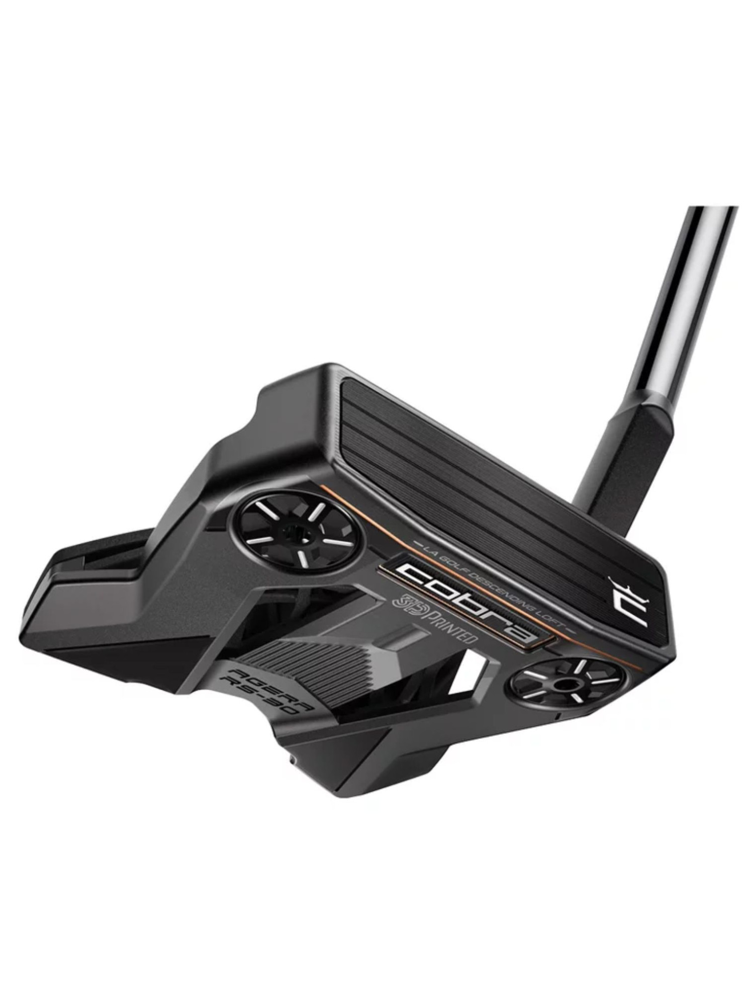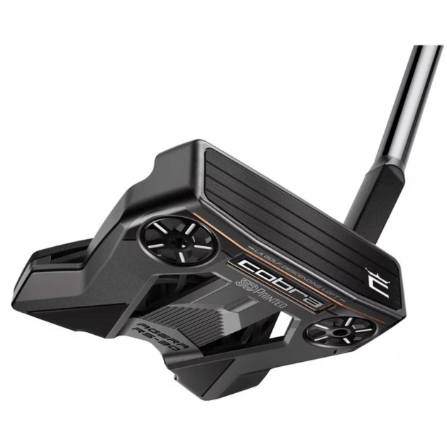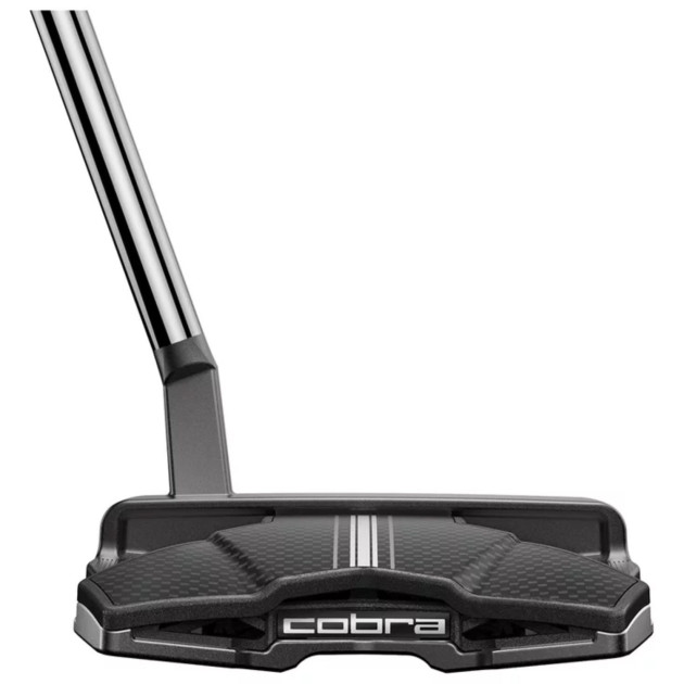 Cobra King 3D destaca por su construcción innovadora a partir de múltiples materiales. Con un tamaño 15% más pequeño que el AGERA, incluye un cartucho de malla de nylon impreso en 3D que pesa 13 g, un marco MIM (Metal Injection Molding) de acero inoxidable 304 de 293 g y una corona de fibra de carbono de 5 g. Esta combinación asegura una estabilidad excepcional en un formato de malla de putter de gran tamaño.