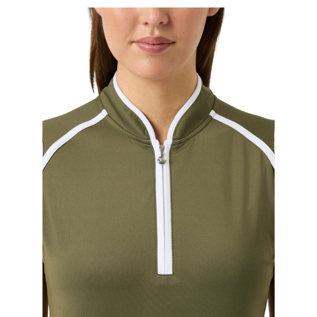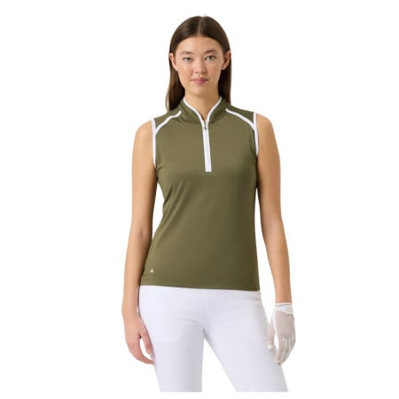 Il est conçu avec un col montant et une fermeture demi-zip à l’avant, offrant un look sportif et moderne. Les finitions en jersey contrasté au niveau du col et des emmanchures apportent une touche raffinée qui sublime ce modèle polyvalent.