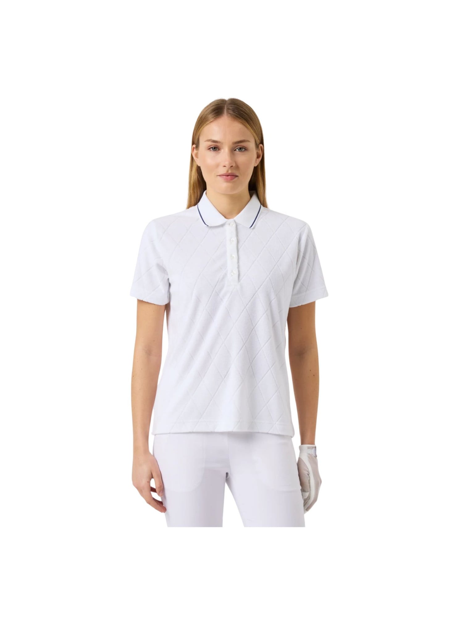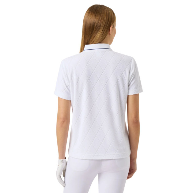 Confectionné en tissu éponge léger, ce top assure une sensation de fraîcheur et de confort tout au long de la journée. Ses manches courtes, son col finement tricoté et sa patte de boutonnage offrent une finition soignée, alliant style et fonctionnalité.