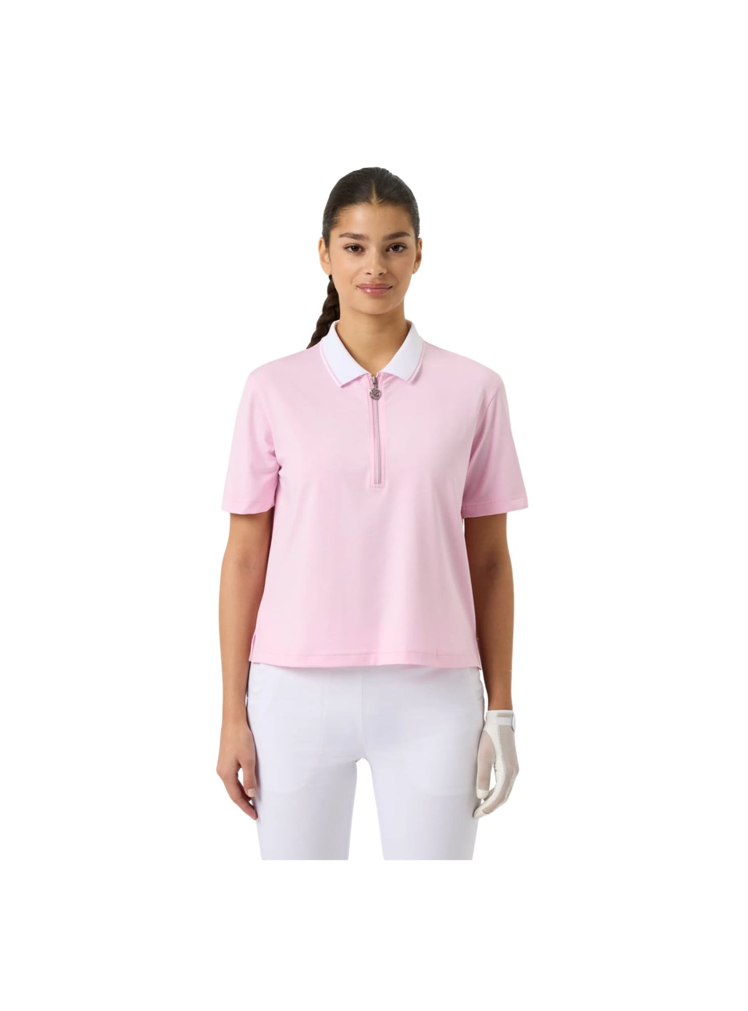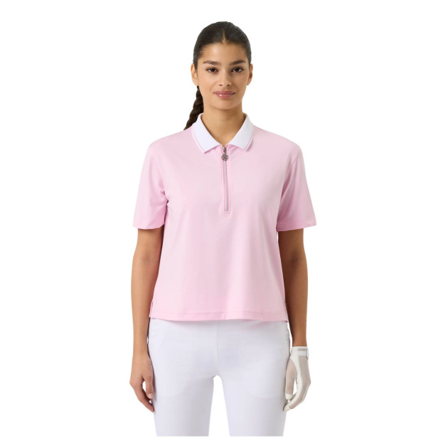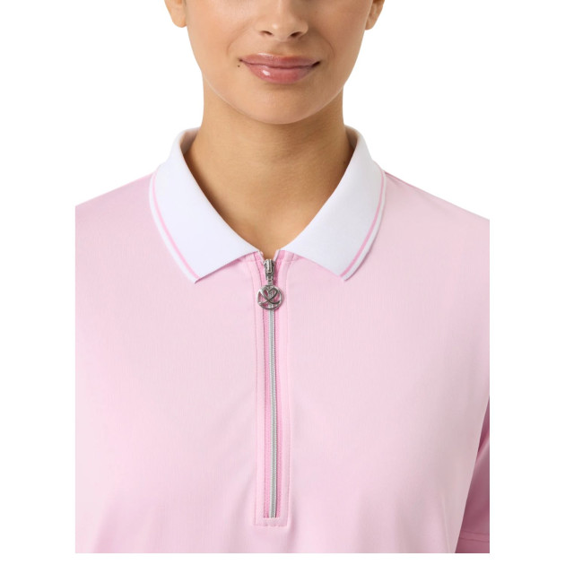 Confectionné en jersey simple léger, il est à séchage rapide et évacuant l’humidité, garantissant fraîcheur et confort tout au long de la journée. Le col tricoté rayé et le demi-zip argenté apportent une touche élégante et sportive à ce modèle polyvalent.